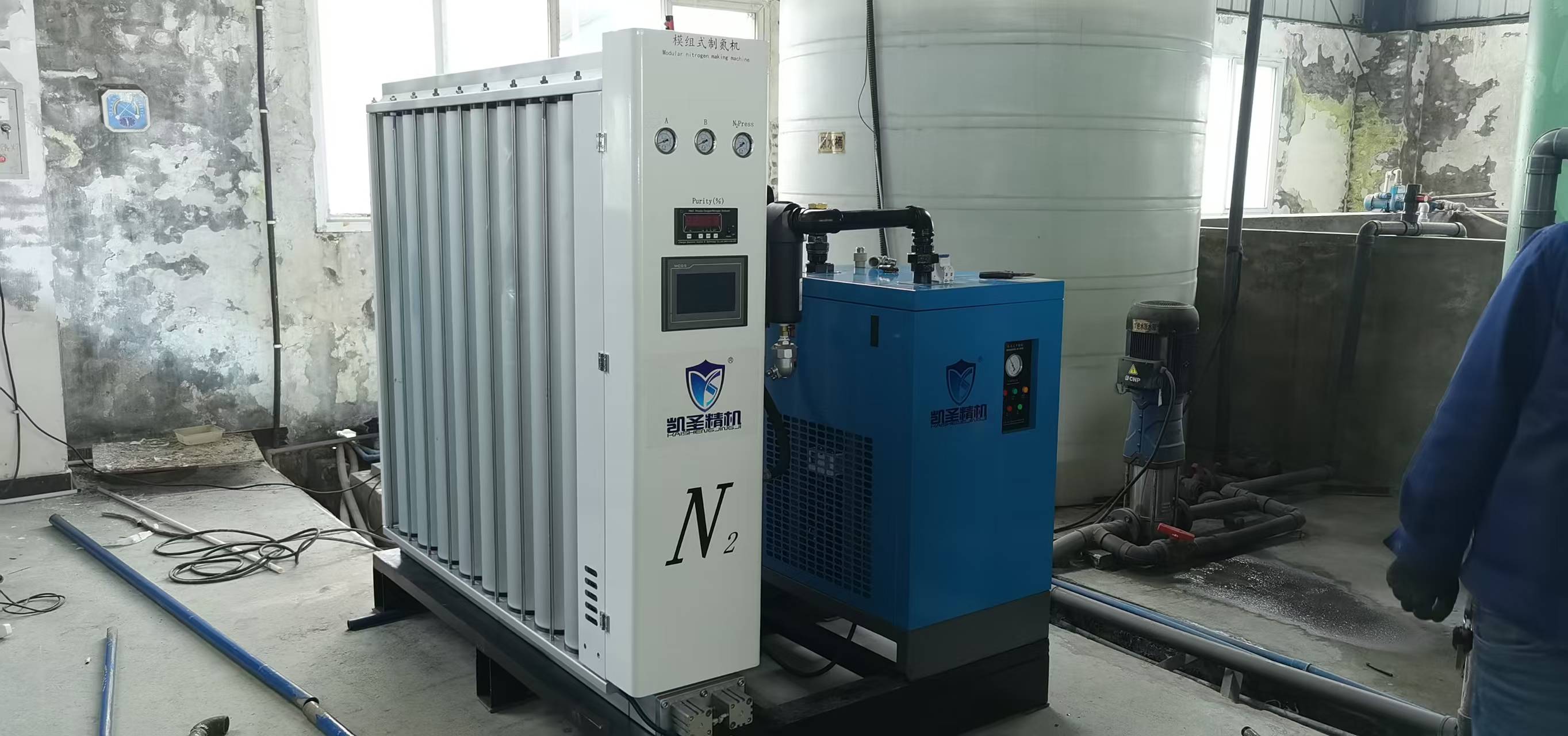 - 氮气缓冲与输出:产出的氮气经缓冲罐稳压后输送至用气点。